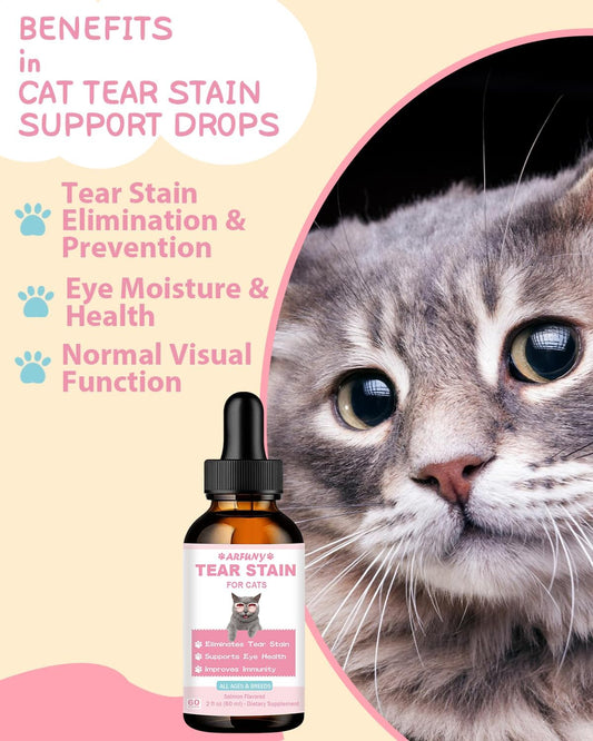 Cat Tear Stain Supplement with Cranberry and Marshmallow - Promotes Eye Health and Immune System - Salmon Flavor, 60ML