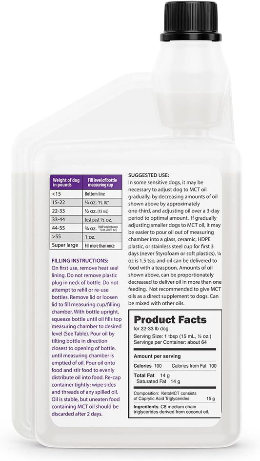 32 oz LifeSense C8 MCT Oil for Dogs, Coconut Oil Source, Keto-Friendly, Human Grade, Made in USA by PhD Nutrition - Optimal Brain and Body Fuel