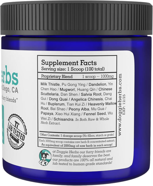 Liver Revive Herbal Dog Supplement for Liver Health - Plant Based Liver Healing, Protection, Repair & Improvement - 100g with Scoop - Human Grade Formula by Doggie Herbs