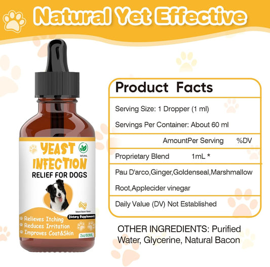 Natural Yeast Infection Treatment Drops for Dogs - Herbal Supplement Soothes Irritation & Itching across All Breeds & Sizes