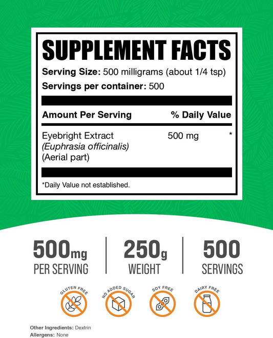 Eyebright Extract Powder - 500mg Herbal Supplement, Gluten Free, 250g - BulkSupplements.com