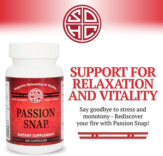 Snap Dynasty Passion Snap Capsules (60ct) - Plant Based Supplement for Relaxation & Vitality