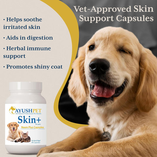 Ayush Herbs Ayush Pet Skin Plus Neem Supplement - Promotes Healthy Skin, Coat, Gut, and Immunity with 90 Capsules