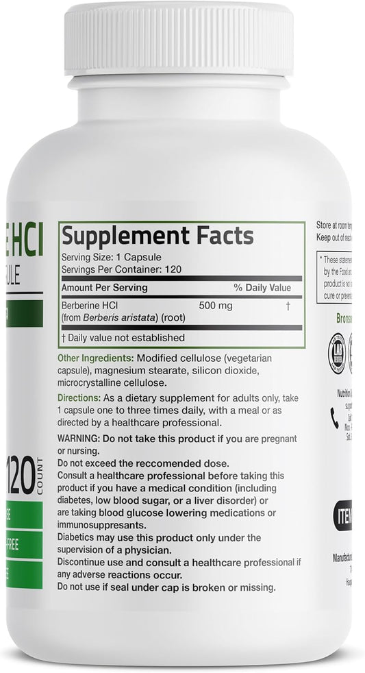 Bronson Berberine HCI 500mg Capsules - Non-GMO Berberis Aristata Supplement, 120 Vegetarian Capsules