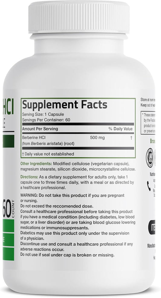 Bronson Berberine HCI 500mg Vegetarian Capsules - Non-GMO Berberis Aristata Supplement - 60 Capsules