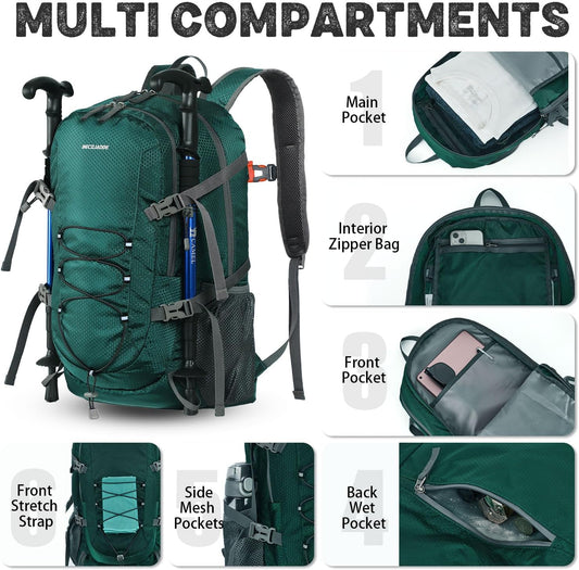 Lightweight 40L Hiking Backpack for Women and Men - Green Daypack for Travel