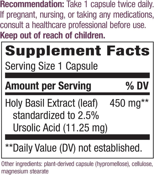 Organic Holy Basil Extract Capsules - 450mg Per Serving - Stress Relief Support - Plant-Based Adaptogen - Gluten-Free - 60 Vegan Capsules