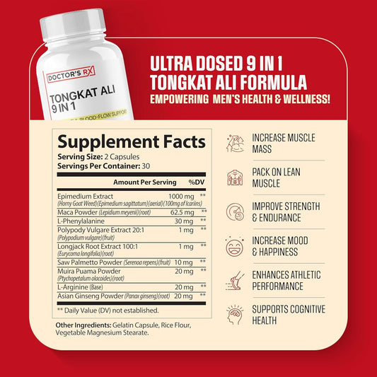 EPN Supplements Doctor's RX: Tongkat Ali & Horny Goat Weed Blend for Enhanced Blood Flow, Mood, and Stamina - 60 Capsules