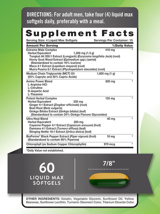 Men's Libido Support Supplement with Tongkat Ali, Horny Goat Weed & Maca - Non-GMO & Gluten Free