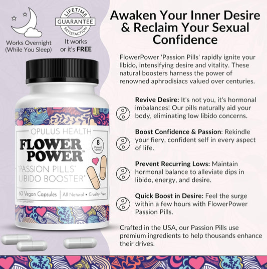 Women's Libido Enhancer Pills - Natural Energy Booster for Women - 60 Vegan Capsules - Flower Power Passion Boost