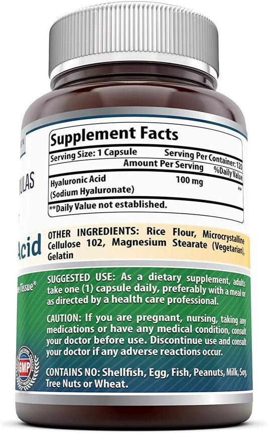 2 Pack Amazing Formulas Hyaluronic Acid 100 mg Capsules - Non-GMO & Gluten Free Supplement - 120 Count - USA Made