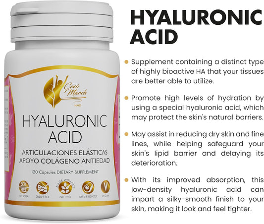 Cocó March N.M.D Hyaluronic Acid Low Molecular Weight Supplement - Boost Collagen, Joint, Skin, & Cell Health - Gluten, Soy, Dairy Free - Keto & Vegan - 4 Month Supply