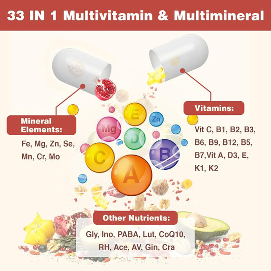 Pack of 2: Sambugra Liposomal 33-in-1 Multivitamin & Hyaluronic Acid Supplements - High Bioavailability for Comprehensive Health Support