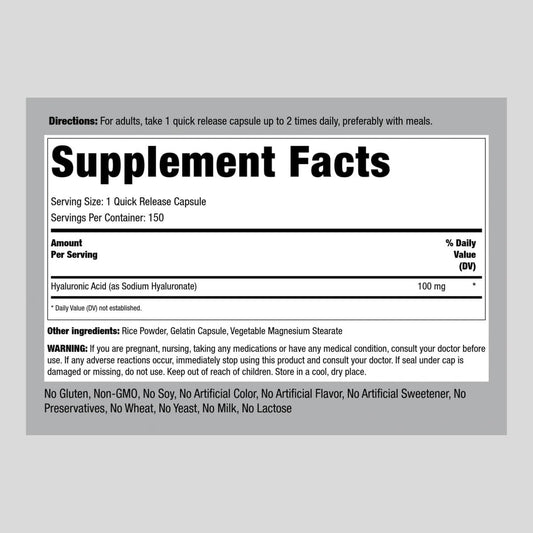 Premium Piping Rock Hyaluronic Acid Capsules - 100mg, 150 Count - Non-GMO, Gluten Free Formula