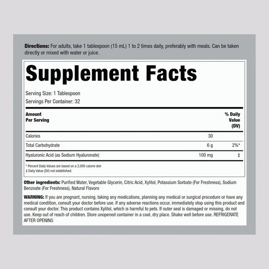 Piping Rock 100mg Liquid Hyaluronic Acid Supplement, 16 fl oz - Berry Flavor, Vegetarian Formula - Non-GMO, Gluten Free