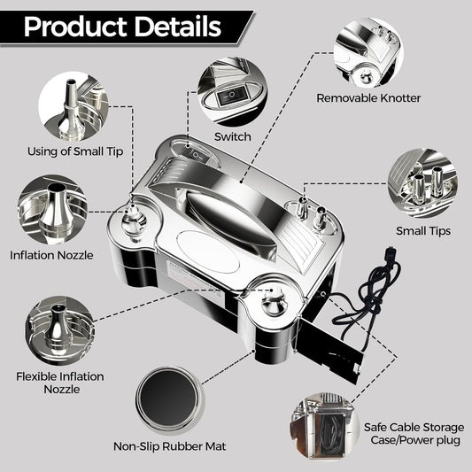 Dual Nozzle Electric Balloon Pump - Portable Inflator for Parties and Decorations - Saves Time and Effort - 110V-120V, 600W