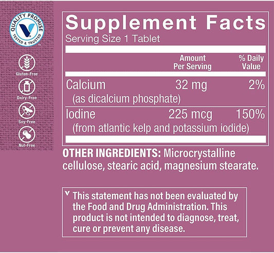 Atlantic Kelp & Potassium Iodine Tablets for Thyroid Support and Energy Boost - 300 Tablets
