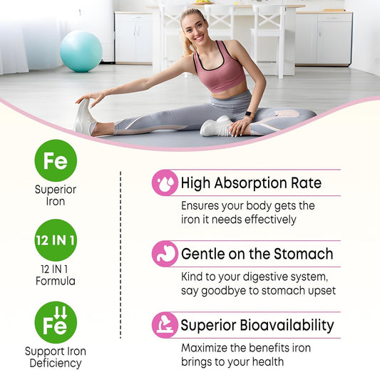 Vegan Iron Gummy Supplement 2 Pack for Energy & Anemia Support with Vitamin C, A, B Complex, Folate, Beet Root, CoQ10, Zinc - 120 Count
