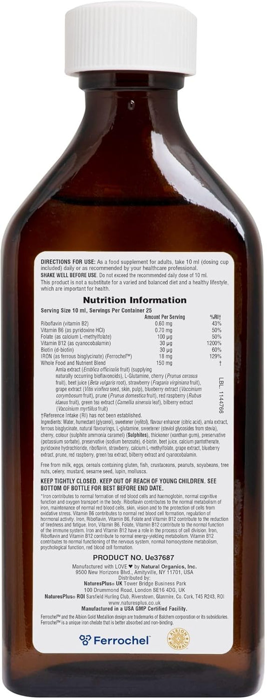 NaturesPlus Hema-Plex Liquid Iron Supplement, Mixed Berry Flavor - 8.5 oz Bottle - Vegan & Gluten Free - 25 Servings