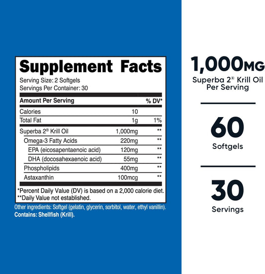 Nutricost Krill Oil 1000mg Softgels - Omega-3 EPA-DHA Supplement with Superbakrill (60 Count)