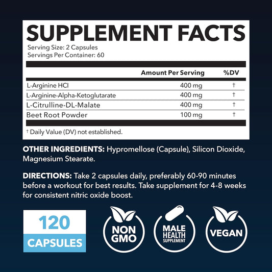 Ultimate Male Pre Workout Supplements for Performance & Endurance - L Arginine Capsules & Powder - Vegan - 120 CapsulesVendor:HAVASU NUTRITIONRegular price $169.18 AUDRegular priceUnit price / per-