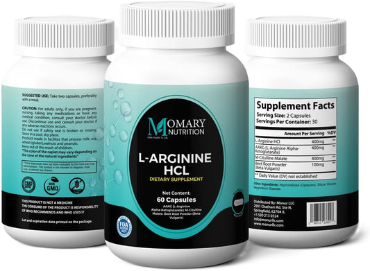 Vegan L-Arginine HCl Capsules with AAKG and Beet Root Powder for Improved Performance and Blood Flow - Gluten Free, 60 Capsules