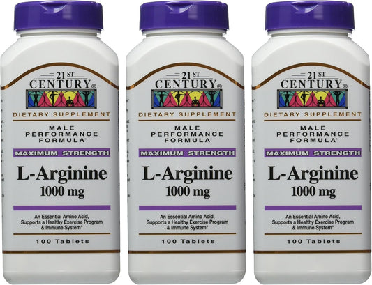 3 Packs of 21st Century L-Arginine 1000 Mg Tablets, 100-Count - Total of 300 Tablets