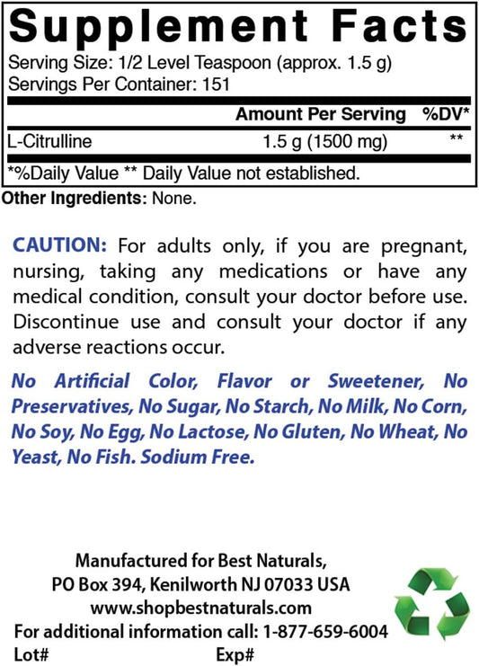 8 OZ Pack of 2 Best Naturals L-Citrulline Powder for Enhanced Performance