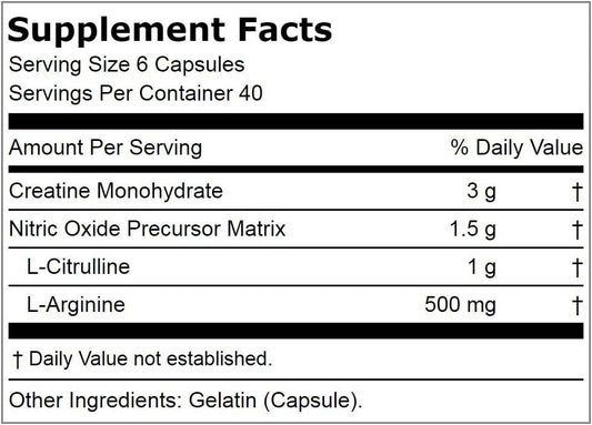 Creatine Pump Capsules with L-Citrulline, L-Arginine, and Creapure - 240 Count