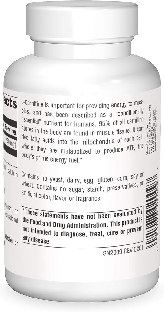 Source Naturals L-Carnitine 500 mg Capsules for Boosting Metabolic Energy - 60 Count