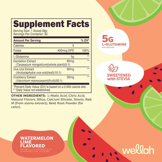 Watermelon Lime L-Glutamine Powder - 50 Servings, 5g Per Serving, Sweetened with Stevia - Wellah Brand