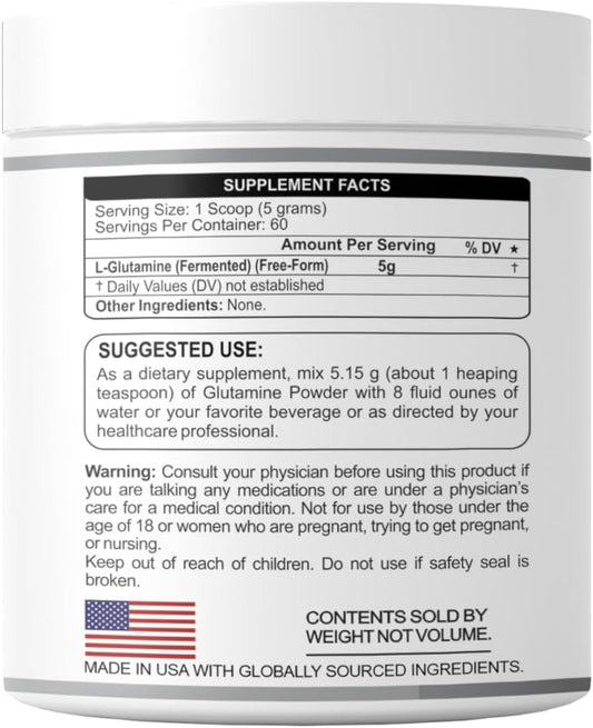 NutritionBizz 300g L-Glutamine Powder - Unflavored for 60 Days Supply with 5g per Serving