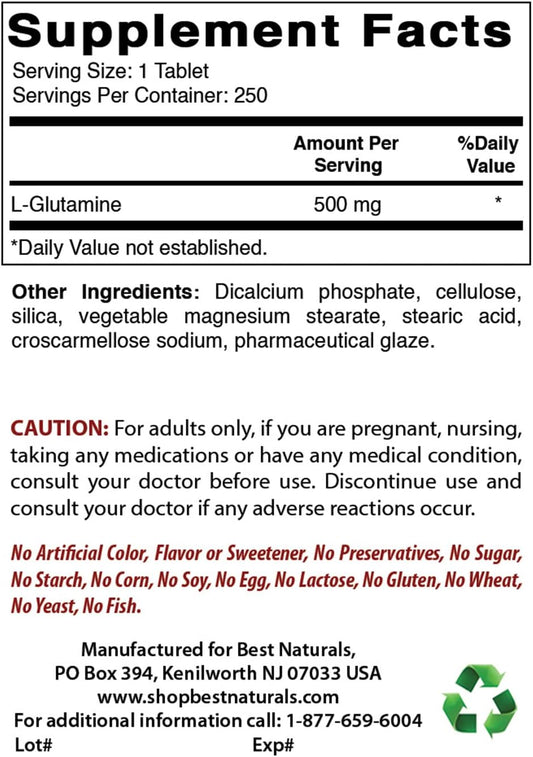 500mg L-Glutamine Tablets - 500 Count (Pack of 2) - Top Natural Supplement