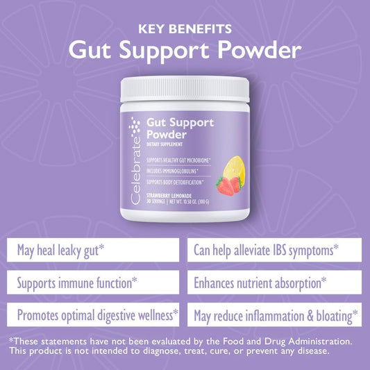 Bariatric Supplements Gut Support Powder - L-Glutamine, Probiotics, Prebiotics, Greens - Digestive Health, Immune Boost - Strawberry Lemonade, 30 Servings