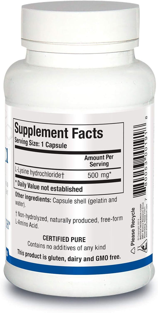 Energy-Boosting L Lysine HCI Amino Acid Supplement by Biotics Research - Supports Immunity & Calcium Absorption - 100 Capsules