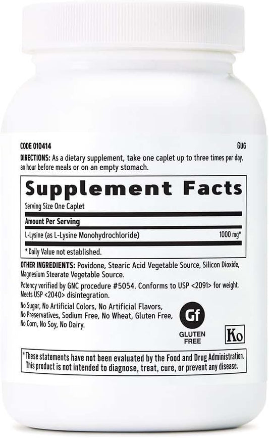 GNC L-Lysine 1000mg - 90 Tablets for Vegetarians