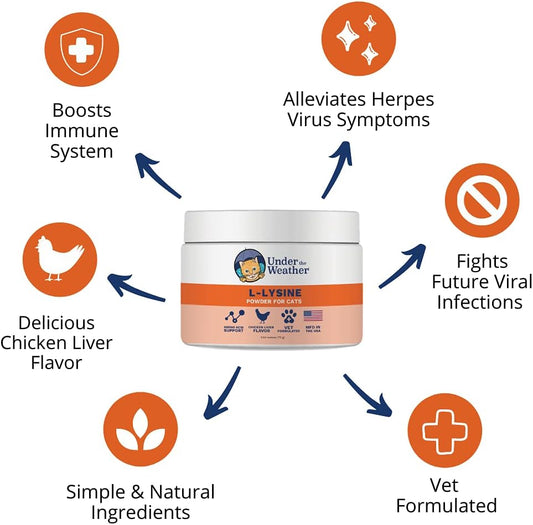 Natural Vet Formulated L-lysine Powder Cat Supplement for Immune Support (2.54 Oz)