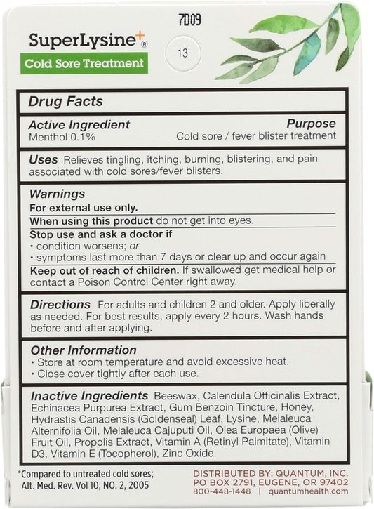 Quantum Health Lysine Cream - 0.25 Ounce, Natural Cold Sore Relief
