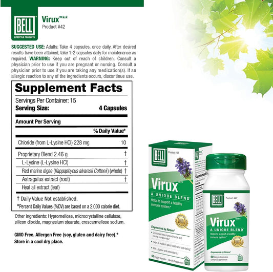 Bell Virux™ L Lysine and Red Marine - Herbal Supplement for Immune System Support with 1000mg Lysine Capsules