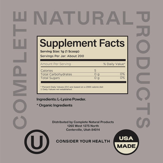 Bulk 8oz L-Lysine Powder Supplement - Natural Product with 200 Servings