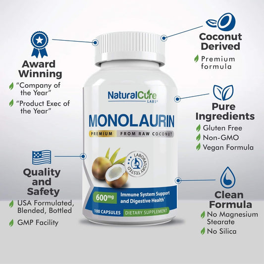 Premium Monolaurin 600mg and L-Lysine Bundle with 1:1 Ratio - Natural Cure Labs