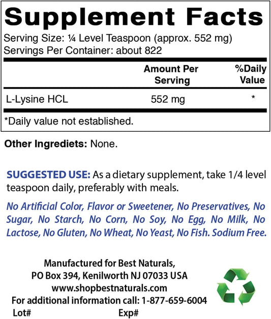 Pure Lysine Powder - Best Naturals, 3 Pounds Total - 100% Natural and Pure