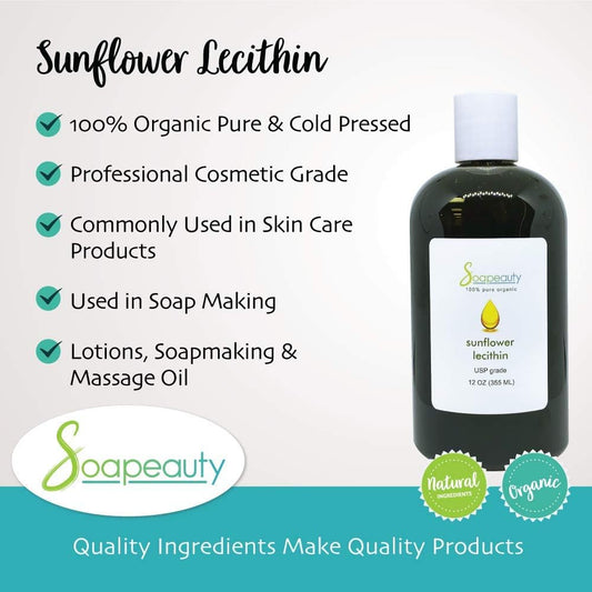 100% Pure Cold Pressed Sunflower Lecithin Liquid Oil for Skin Moisturizer, Soap Making, and Lotion - USP Grade Unbleached - Available in Various Sizes (12 oz)