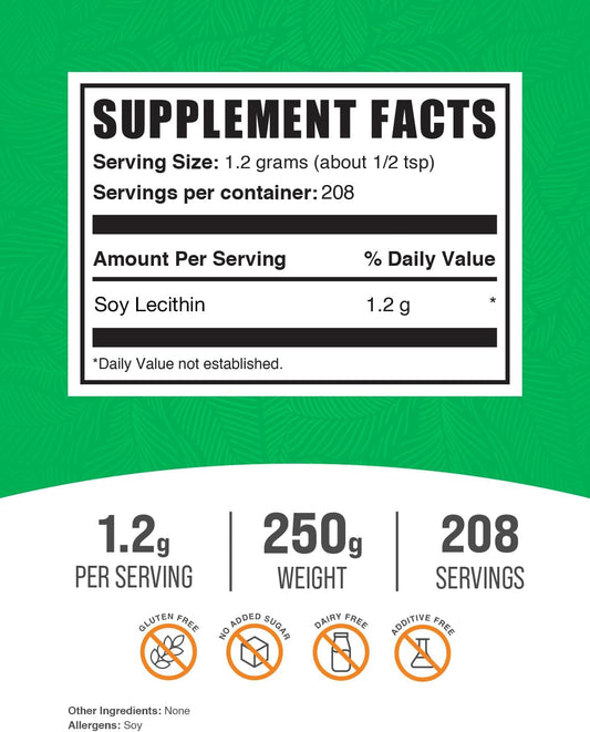 High-Quality Soy Lecithin Powder - 1200mg Supplement, Gluten-Free, 250g (8.8 oz) - Food Grade Lecithin Powder Pack of 1