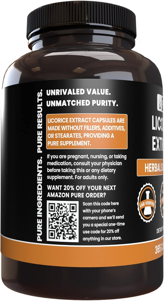 365 Pure Licorice Extract Capsules - Original Ingredients, No Magnesium or Rice Fillers, Lab Verified