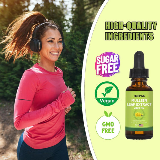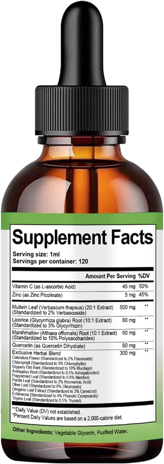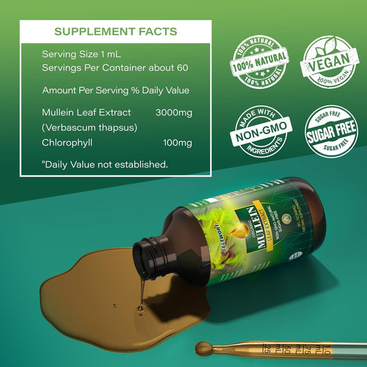 Organic Mullein Leaf Extract Drops for Lung Health - Respiratory Support Supplement for Smokers - 1 Month Supply - 2 Fl Oz