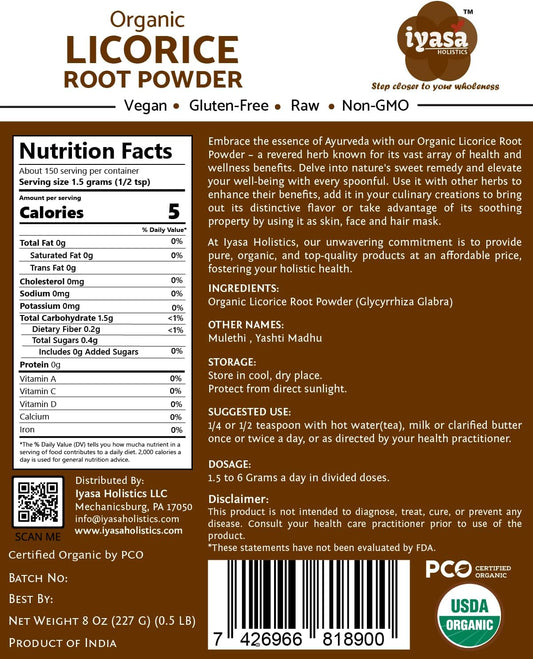8oz Organic Licorice Root Powder - Herbal Supplement for Digestion | Natural Sweetener | Non-GMO with No Preservatives