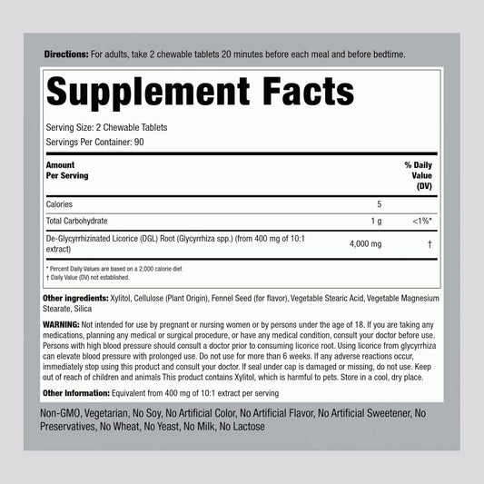 180 Count Horbäach DGL Licorice Chewable Tablets - 4000mg - Vegetarian & Non-GMO