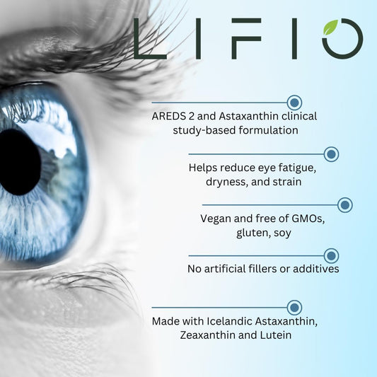 Lifio Vision+ Eye Protection Supplement with Icelandic Astaxanthin, Zeaxanthin, Lutein - Vegan, 60 Capsules