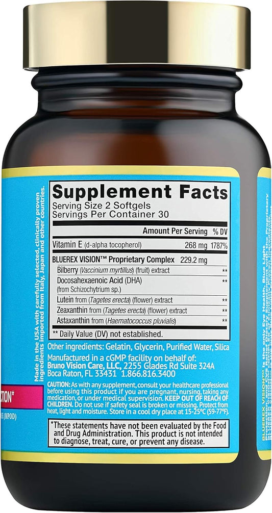 Bluerex Vision Eye Health Supplement for Adults - Vitamin E & Bilberry Extracts - Antioxidant Support for Computer Vision Syndrome & Dry Eyes